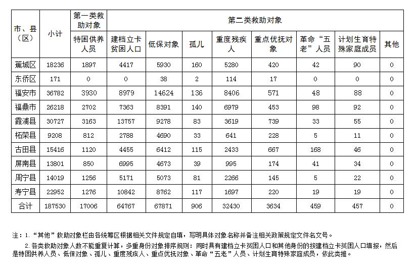 2021年1-12月宁德市各类医疗救助对象人数统计