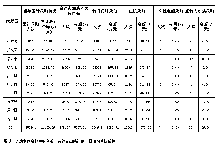 2022年上半年宁德市城乡居民医疗救助基金运行情况统计