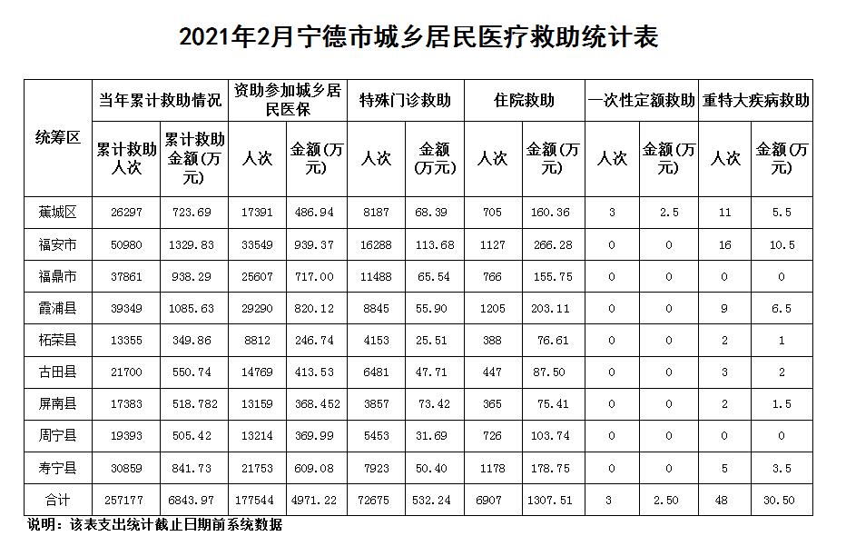 2021年2月宁德市城乡居民医疗救助基金运行情况统计