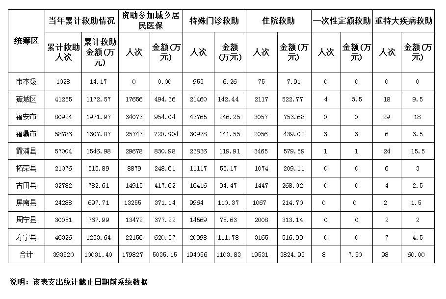 2021年1-5月宁德市城乡居民医疗救助基金运行情况统计