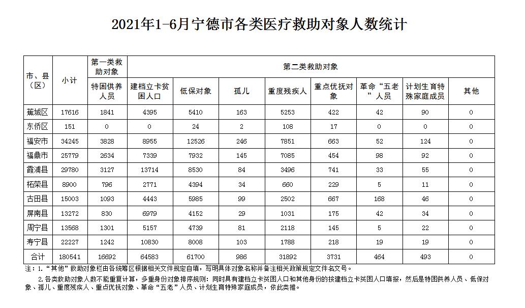 2021年1-6月宁德市各类医疗救助对象人数统计