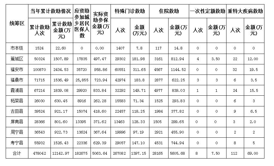 2021年1-7月宁德市城乡居民医疗救助基金运行情况统计