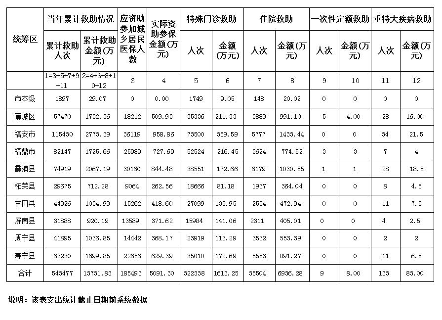2021年1-9月宁德市城乡居民医疗救助基金运行情况统计