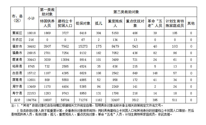 2022年1-12月宁德市各类医疗救助对象人数统计