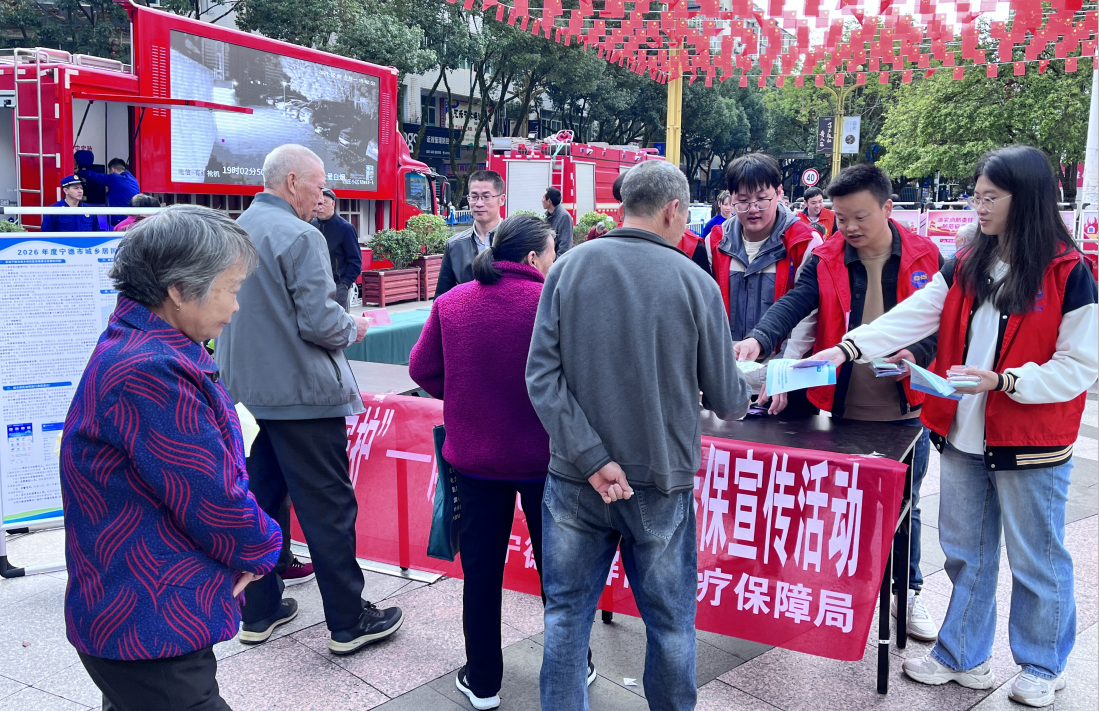 为扎实推进2026年度城乡居民基本医疗保险参保缴费工作,切实提高广大群众对医保政策的知晓率和参保积极性,11月7日上午,屏南医保局联合县消防大队、古峰镇政府,在县中心广场举办“医保惠民生,平安伴你行”主题宣传活动,让医保惠民政策精准触达群众。