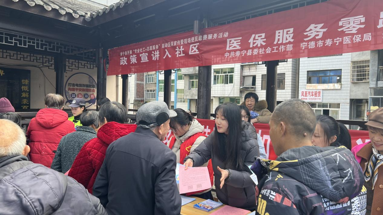 11月19日,寿宁医保部门联合税务、信用社、市场监管、社工、交警等部门前往犀溪镇、寿宁子来桥头等地开展“政策宣讲入社区 医保服务零距离”城乡居民医保参保缴费动员及医保政策宣传活动。