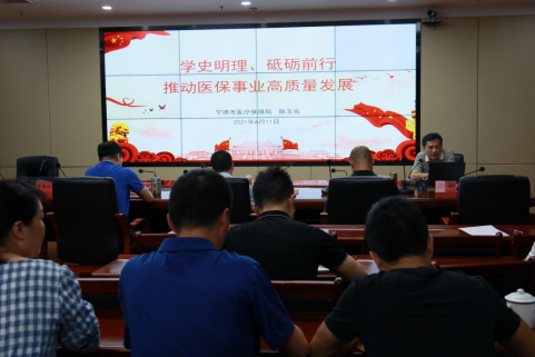 6月11日下午,市医保局党组书记、局长陈玉良以《学史明理、砥砺前行,推动医保事业高质量发展》为题,为全体党员干部讲党课。