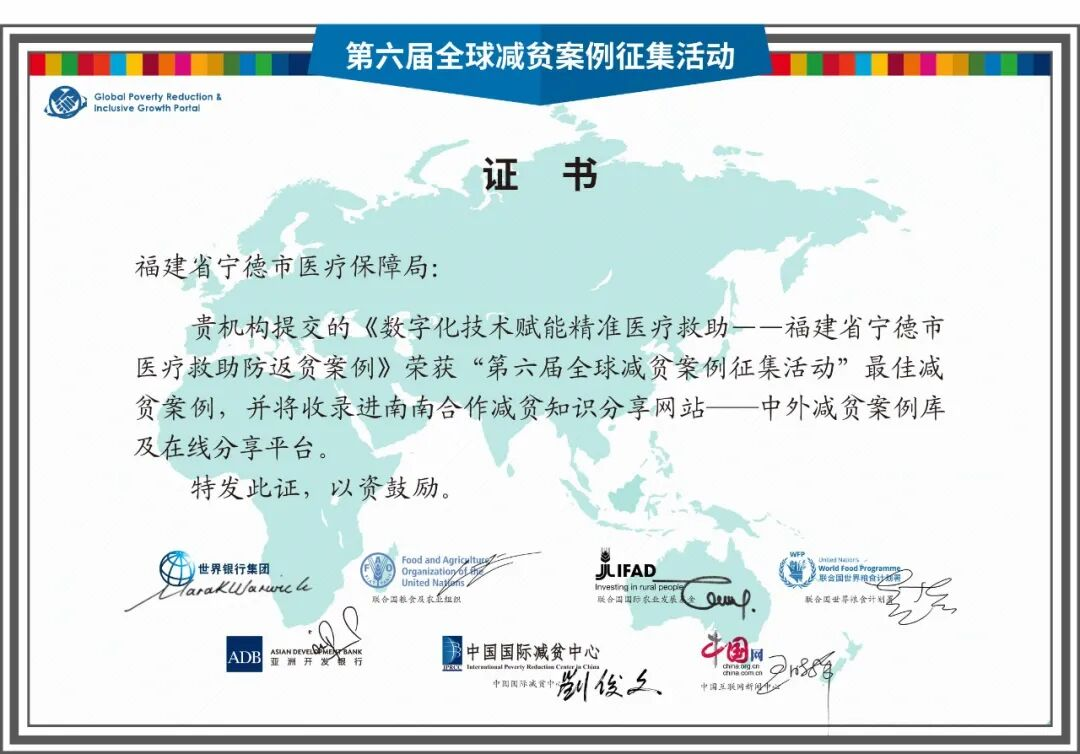 12月10日,由中国国际减贫中心、联合国粮农组织等机构联合主办的2025全球减贫伙伴研讨会在北京召开。会上公布了“第六届全球减贫案例征集活动”最佳案例名单并举行颁奖仪式,宁德市医疗保障局参选的《数字化技术赋能精准医疗救助——福建省宁德市医疗救助防返贫案例》从全球840个案例中脱颖而出,荣获“最佳减贫案例”,是福建省此次评选中唯一获此殊荣的案例。