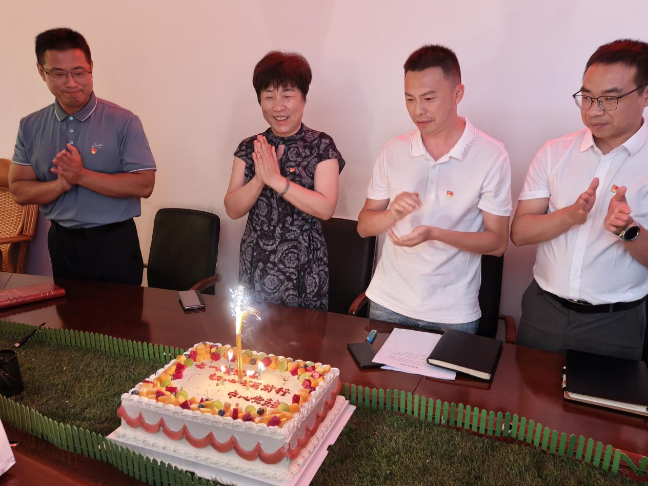 “一条大河波浪宽……”饱含深情的《我的祖国》合唱将活动推向高潮,嘹亮歌声激荡起澎湃的爱党爱国热情。在歌声凝聚的浓厚情感氛围中,活动进入庄重而温馨的环节——全体党员共同分享象征红色基因代代相传的蛋糕,深切体会组织的关怀与革命精神的传承。活动的尾声,全员与党旗定格奋斗初心,以“全家福”激励新征程接续奋斗。