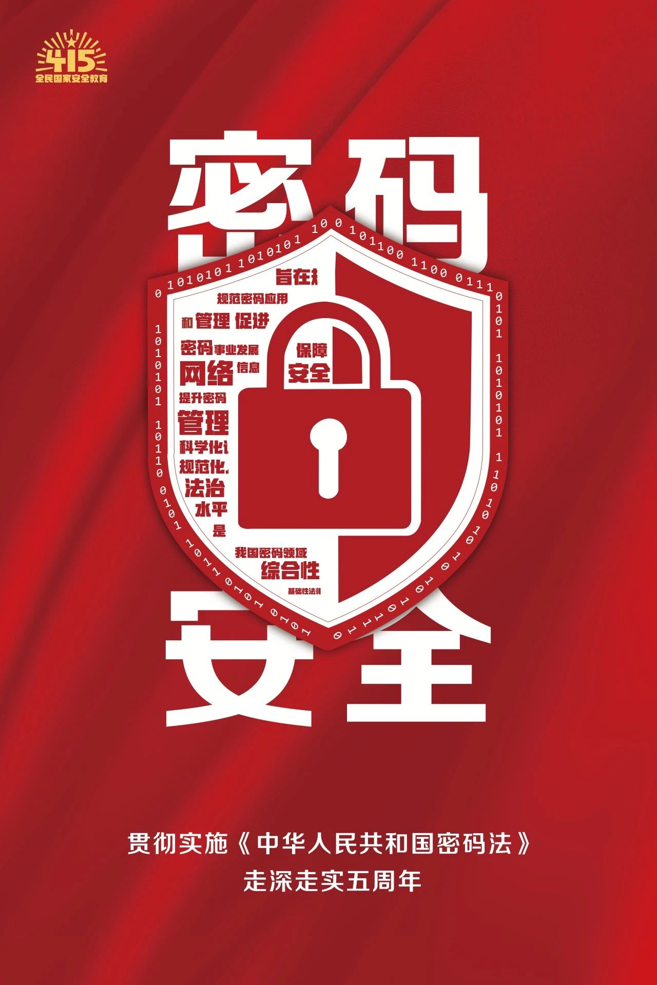 2025年是《中华人民共和国密码法》正式实施五周年,也是《中华人民共和国国家安全法》颁布10周年。4月15日将迎来第十个全民国家安全教育日。今年密码安全宣传教育活动主题是:“贯彻落实《中华人民共和国密码法》,走深走实五周年”。